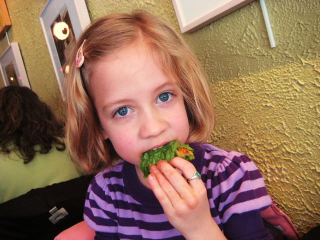 I was a little afraid that Kendall would be upset about missing her Valentine party at school on Friday, but she was so excited about our trip that she didn’t even mind. We left Friday morning to head out on our excursion. On our way there, we realized we’d be arriving in Raleigh just in time for an early lunch before we headed to the Marbles Kids Museum. I pulled out my Blackberry and did a search for vegetarian restaurants in Raleigh. The first one that came up was this little gem: